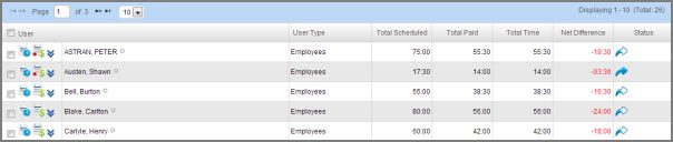 Net Difference - The difference between scheduled and total paid time. If the total time is less than scheduled, it shows up as negative.