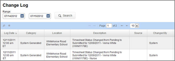 Click the last icon (the one that looks like a sheet of paper) to see the Change Log for this timesheet. You can change the date range for the change log to see more information. For more information on Change Logs click here.