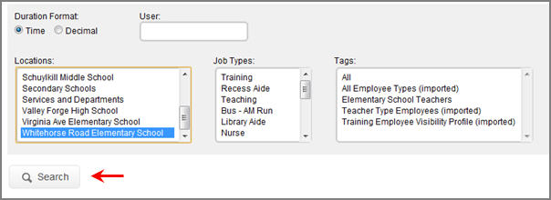 For more advanced filtering, click the Advanced Options link. Here you can change the duration format from Time to Decimal. With the Time setting 7 hours and 15 minutes would show as "7:15". With the Decimal setting it would show as "7.25".