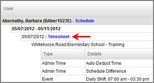 Click on the Timesheet link in the report to view the employee's timesheet.