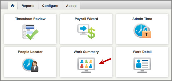 To access the Work Summary report click on the Work Summary link from the VeriTime home page or under the Reports tab.