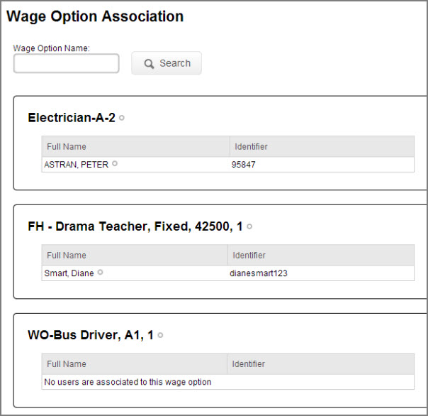 If your district is using the Wage Option feature this report allows you to view all users and the Wage Options they are associated to.