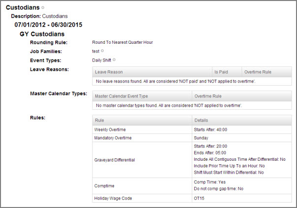The Staff Group Summary Report shows you all of your Staff Groups and all of the details of each Staff Group Profile including the Rounding Rule, included Job Families, included Event Types, Leave Reason and Master Calendar Event pay behavior, and Pay Rules/Options.