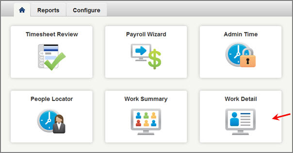 To access the Work Detail report click on the Work Detail link from the VeriTime home page or under the Reports tab.