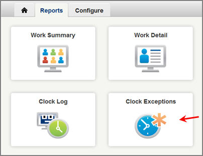 The Clock Exceptions report is a quick way for you to look for any kind of Clock Exceptions, such as late clock-in, missed punch, etc.